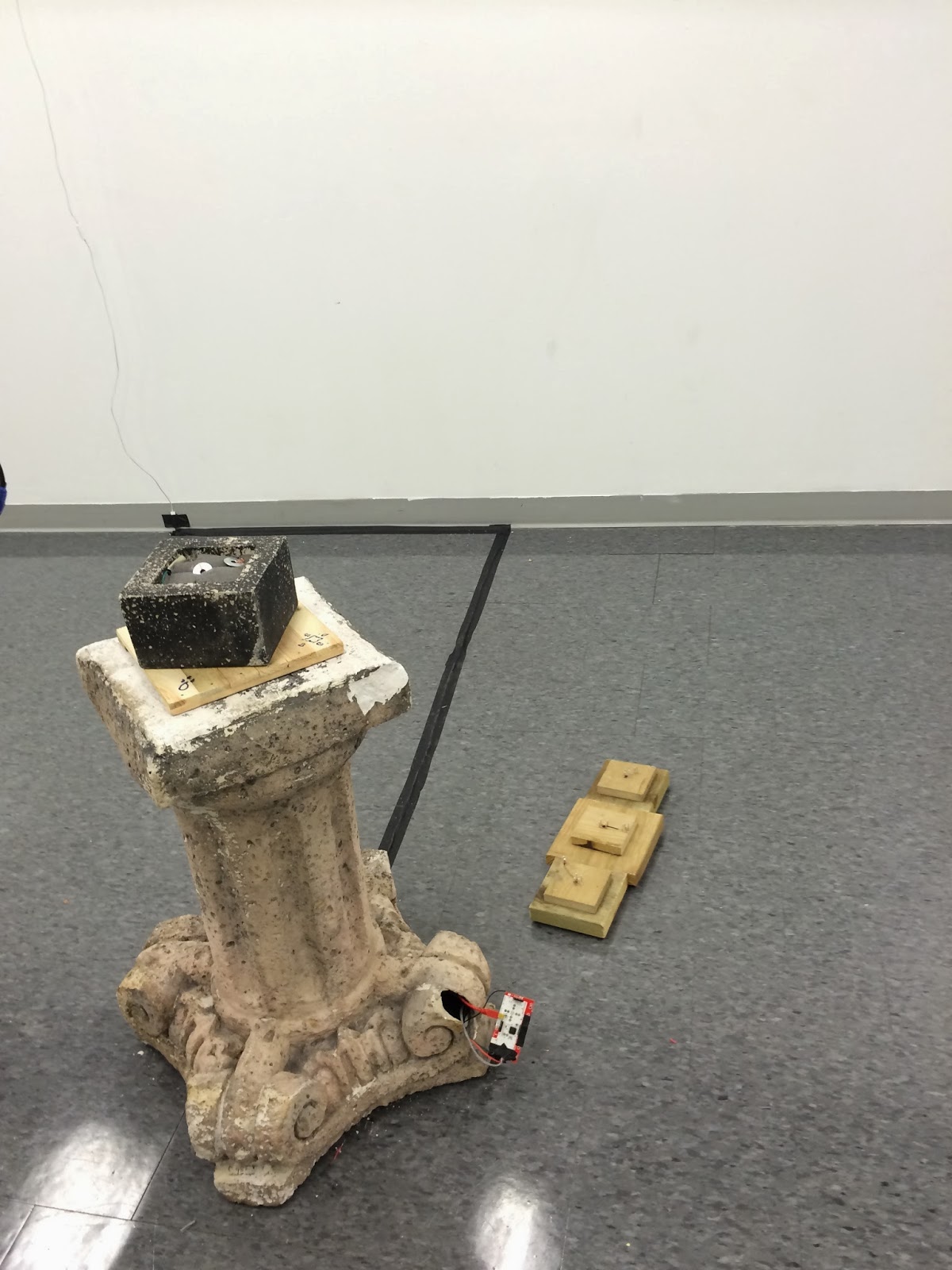 I ended up using my Makey Makey instead of my Arduino. It suited the time sensative nature of the sketch and still helped me realize how this would work would one day evolve. I also used a ionic column cap that I bought at an estate sale for like 5 bucks and topped it with part of an old water fountain that I disassembled. I filled the inside of the water fountain with foam and embedded into the foam was washers placed in a really specific pattern. These washers have cables that are tied to them on one end and the other ends are plugged into different ports in the Makey Makey.